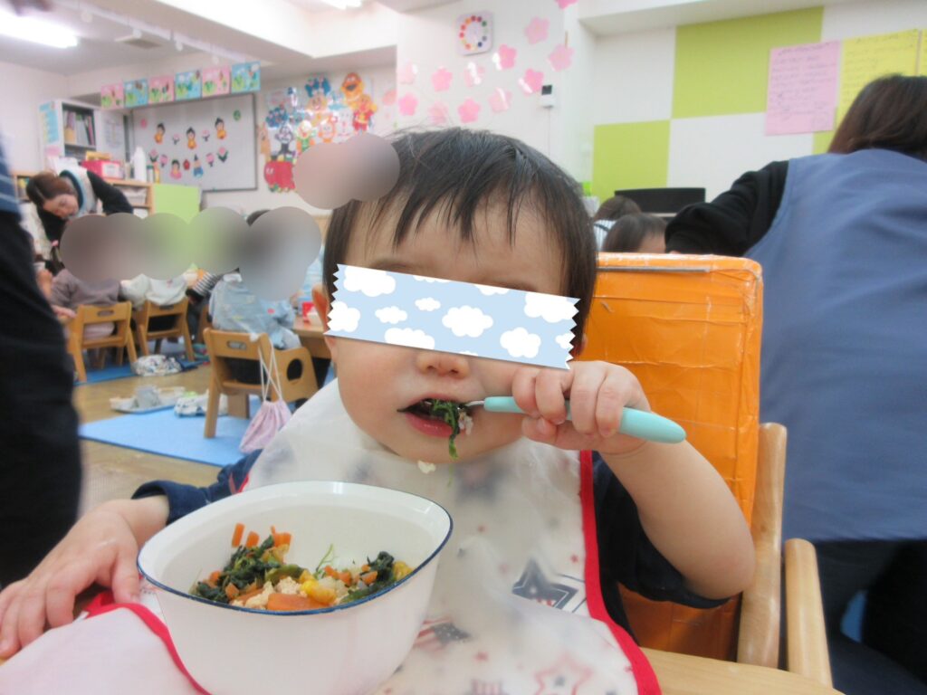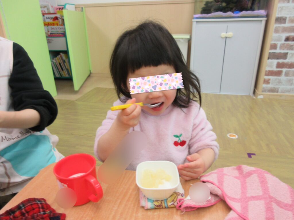 はじめに、ひなまつりの絵本「おいしいひなまつり」をみんなで見ました👀由来のお話も聞きながら、ひなまつりがみんなの健やかな成長を願う大切な日だということを知りましたよ😌