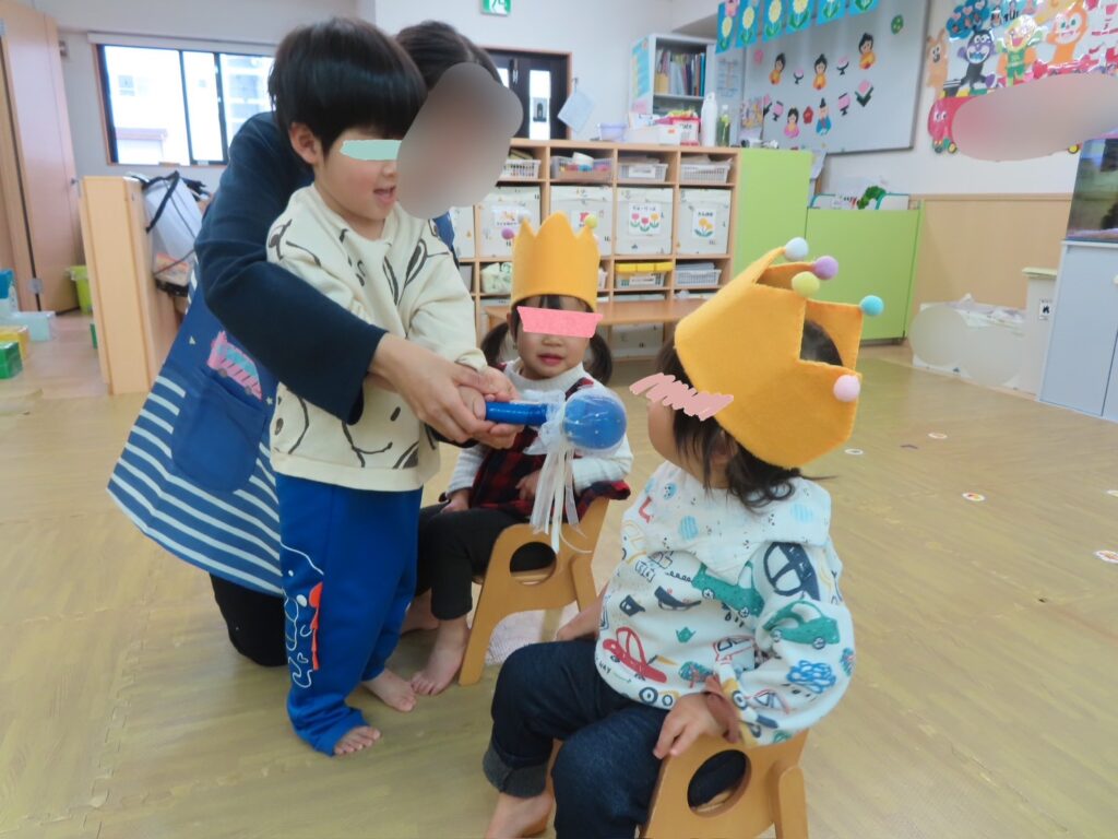 3月生まれのお友達は2人🎶みんなの前に出ると少しドキドキした様子でしたが、インタビューには上手に答えることができましたよ👏