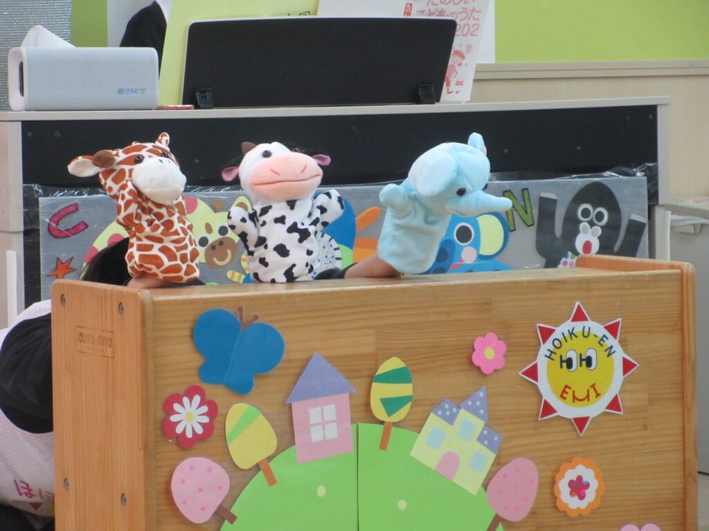 出し物では大きな「だるまさんが」の絵本やパペット劇を楽しみました🥰