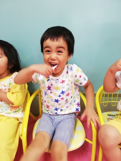 きりん組は6月から給食後にハミガキを始めました。上手なハミガキのコツは強く磨く事ではなく丁寧に隅々まで磨く事!正しいハミガキの仕方を楽しく教えています❣