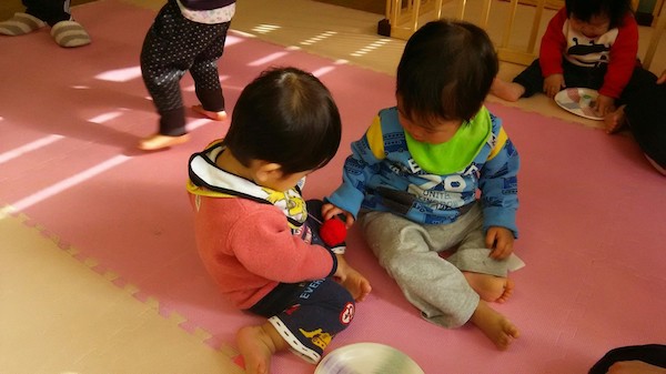 周りの様子を見てから恐る恐る手を伸ばしてしてみるお友だちなどさまざま。。