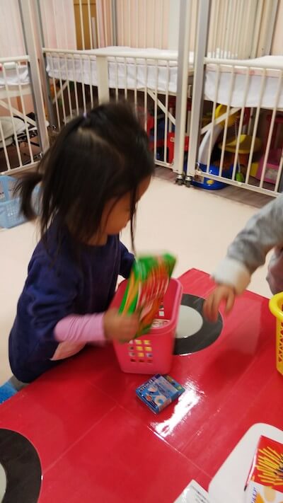 お菓子の空箱や 袋などを 集め 手 作りレジを 作って