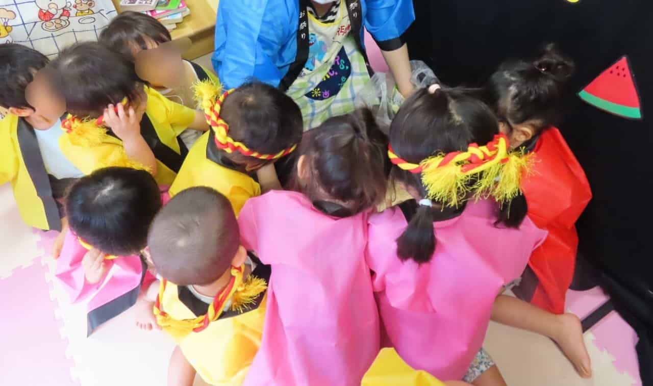 今年は保護者の方にも参加していただいての夏祭りを開催しました🏮✨前日はっぴを着て、盆踊りを踊ったり行事食をいただいて楽しみにしていた子どもたち🤗💓