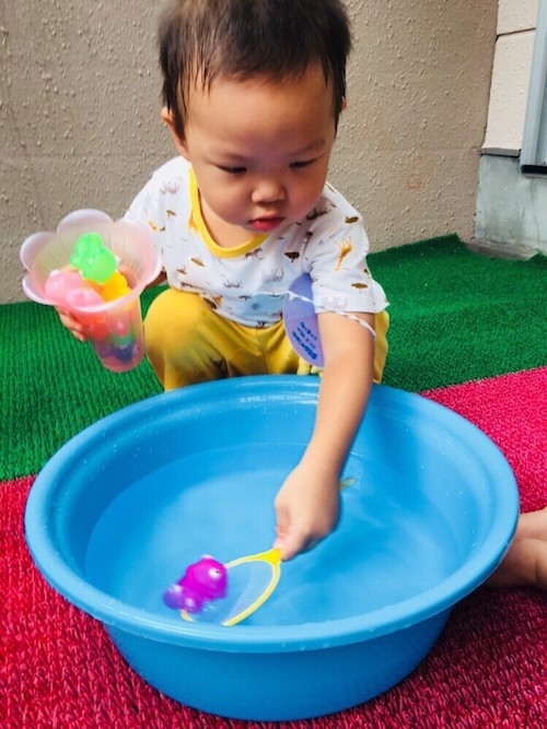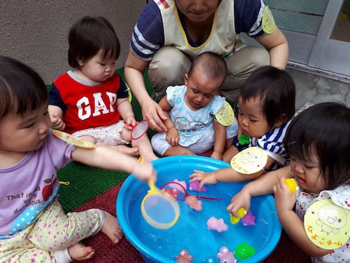 4つのグループに分かれて、金魚すくいや、ヨーヨー遊び、的当てなどのコーナー遊びを楽しみましたよ🎵