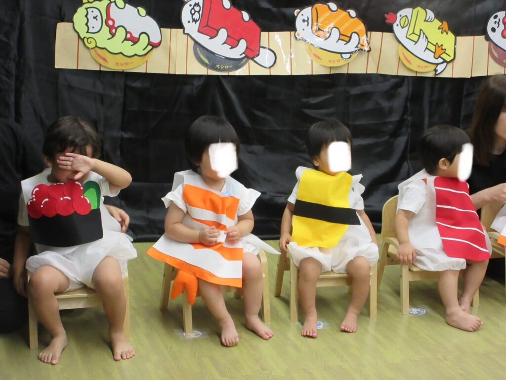 うさぎ組さんは、まずは一人ずつお寿司に変身した姿で登場!ちょっぴり緊張している子もいましたが、お名前を呼ばれると「はーい!」と元気に手を挙げる姿に、たくさんの拍手が✨