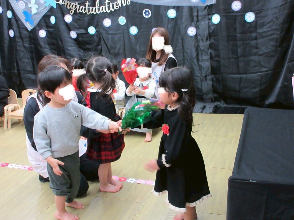 また、在園児からは心のこもった手作りのお花💐のプレゼントがあり、優しく手渡してもらう姿に、さらにあたたかい空気に包まれました🌼
