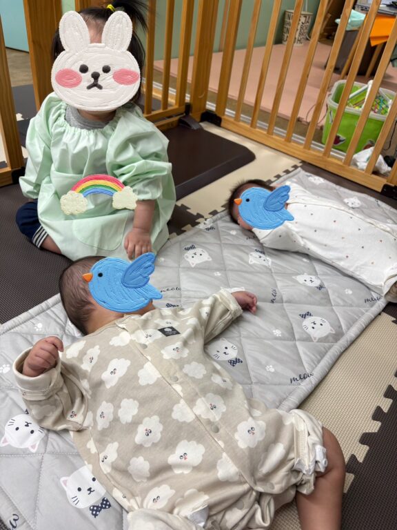 ひよこ組🐥のお友だちは保育者にあやしてもらうとニコニコ〜と可愛い笑顔を見せてくれています💕